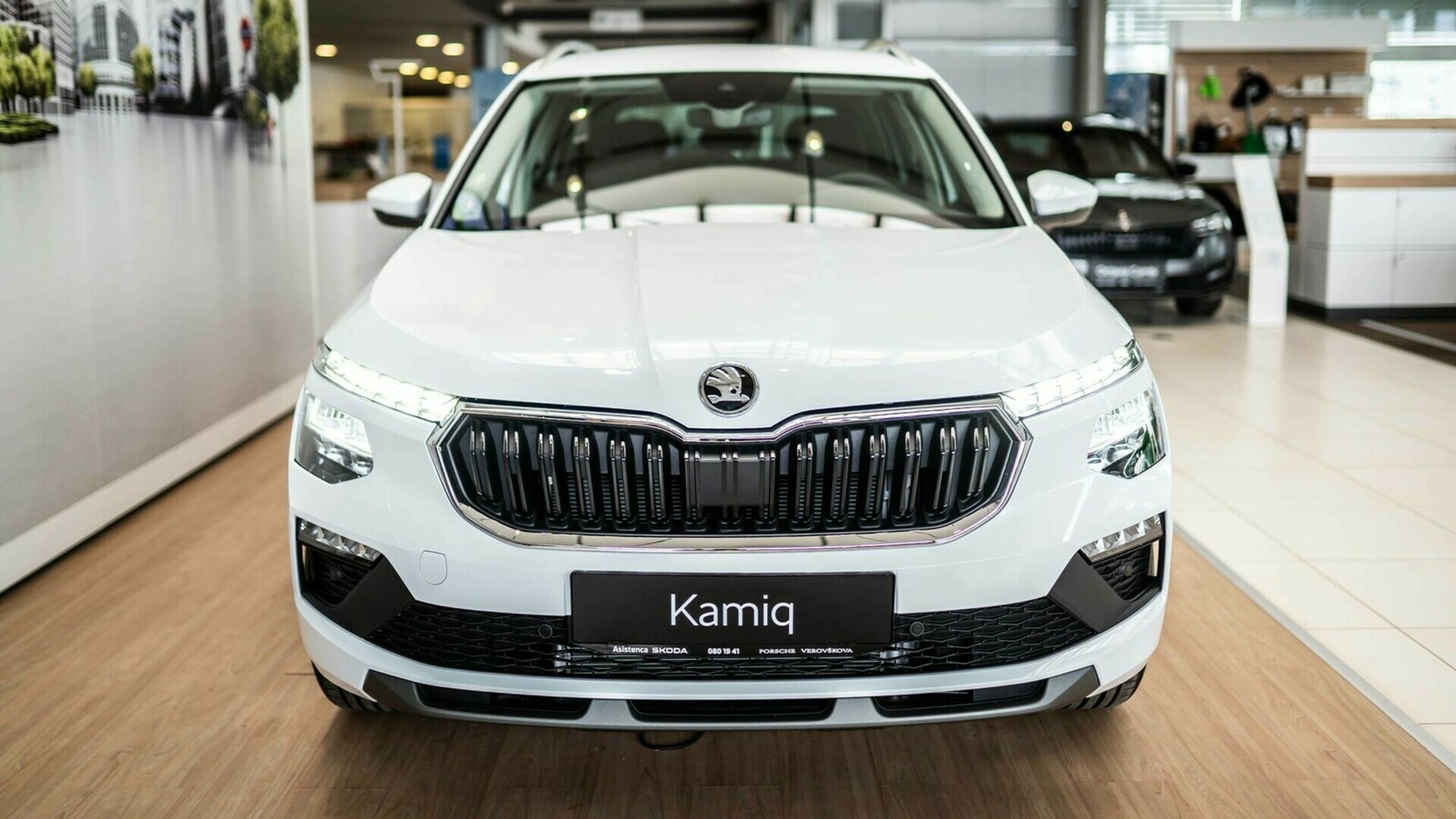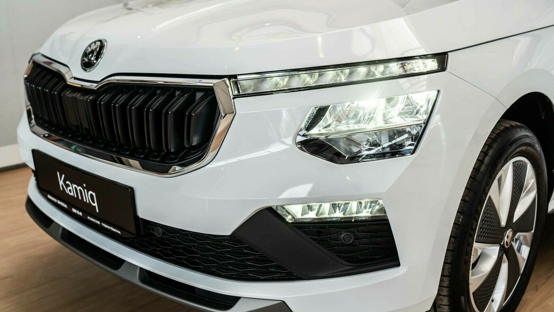 Škoda Kamiq ima zdaj večjo in bolj pokončno Škodino mrežo hladilnika za bolj robusten SUV-jevski videz. Poleg tega imajo Kamiqovi značilni deljeni žarometi nova proporcionalna razmerja: zgornji svetlobni element je še bolj vitek, medtem ko se je spodnji povečal. V njem so nameščeni opcijski matrični TOP LED-žarometi z značilnimi šesterokotnimi matričnimi moduli, ki so prvič na voljo za Kamiq.