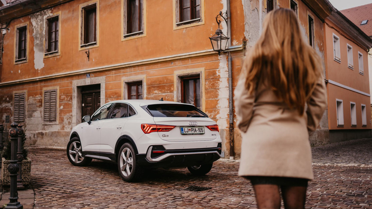 Novi Audi Q3 Sportback je dinamično začinjena izvedenka običajnega modela Audi Q3, vendar se lahko kljub nekoliko bolj spuščajoči se strešni liniji vseeno pohvali z izjemno mero praktičnosti, saj je prtljažnik le nekoliko manjši, prostora za glave na zadnji klopi pa je prav tako dovolj. Ko sem Audi Q3 Sportback videl prvič, sem občudoval njegovo dovršeno obliko. Čeprav ni take vrste avtomobil, kot bi si ga sam želel, je moč opaziti skrbno načrtovanje in izrazito natančnost pri dizajnu. Pri Porsche Verovškova, ki je uradni trgovec znamke Audi, so mi na test ponudili Audi Q3 Sportback 35 TDI S line S tronic z 2.0 litrskim dizelskim motorjem z močjo 110 kilovatov oziroma 150 konjskimi močmi in avtomatskim S tronic menjalnikom. Slednja je tudi najpogostejša izbira pri tem modelu. Želel sem preveriti kako se bo novi Audi Q3 Sportback izkazal na testu.