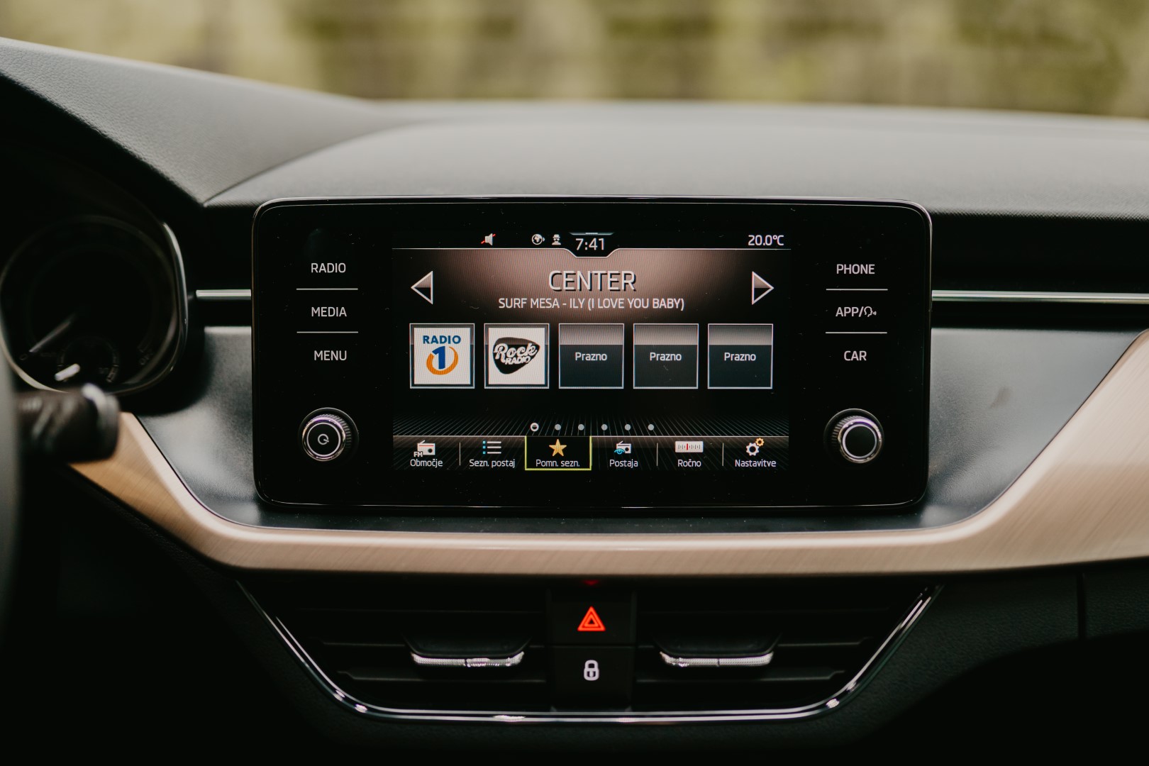 V prostorni notranjosti Scale sem hitro opazil, da prevladuje povsem ergonomsko zasnovana armaturna plošča. Kar nekaj površin je takih, ki so prekrite z mehkimi materiali. Vozniki se lahko namestijo v udobne sedeže, ki so oblazinjeni iz mikrovlaken Suedia. Vozniki lahko cel kup dodatnih informacij, kot so na primer vreme na poti ali prosta parkirna mesta, sproti poiščete na zaslonu multimedije v vaši neposredni bližini. Za udobje je poskrbljeno: v testnem primerku sem bil navdušen nad hitro ogrevanim vetrobranskim steklom, ogrevanim volanskim obročem in ogrevanimi sedeži spredaj in zadaj.