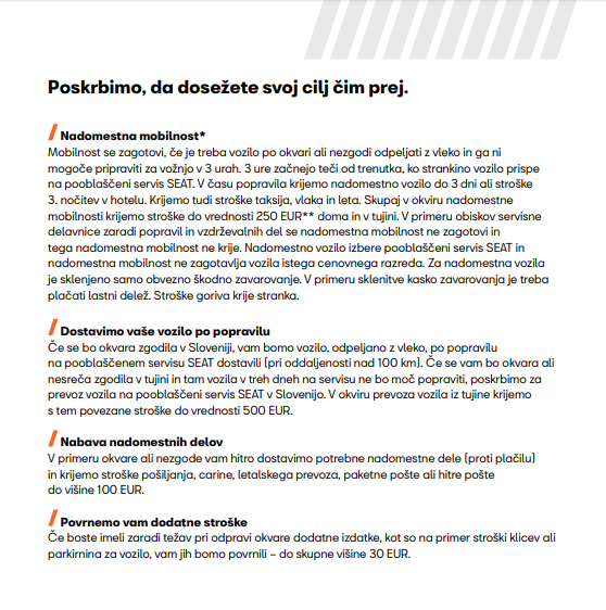 SEAT asistenca - kaj vsebujejo vaše storitve?