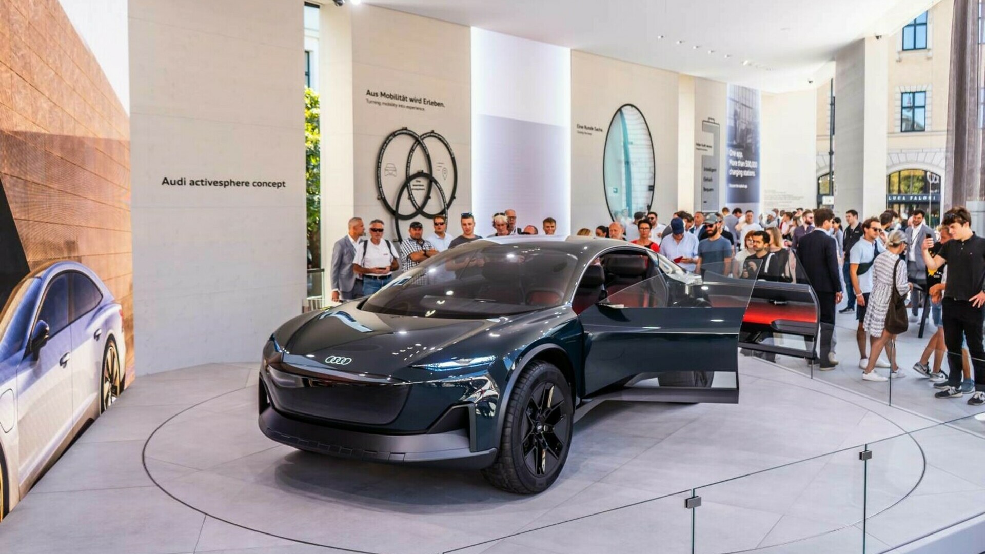 Znamka Audi je predstavila tudi dva izjemna koncepta, prvi je imenovan Audi activesphere in prikazuje izjemen prikaz električne prihodnosti znamke Audi - četrti popolnoma električni koncept v družini sfer, ki ponazarja, kako Audi razmišlja o mobilnosti prihodnosti – tokrat je povsem prilagojen aktivnemu načinu življenja. Kot vsa konceptna vozila v družini sfer tudi Audi activesphere omogoča možnost klasične vožnje z volanom in stopalkama, na ustreznem terenu pa se lahko voznik prepusti avtonomnemu načinu vožnje. Velik del konceptnega vozila Audi activesphere predstavljajo steklene površine, ki notranjost povezujejo z okolico vozila.