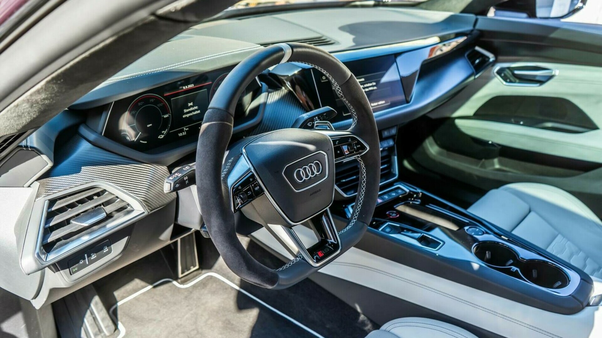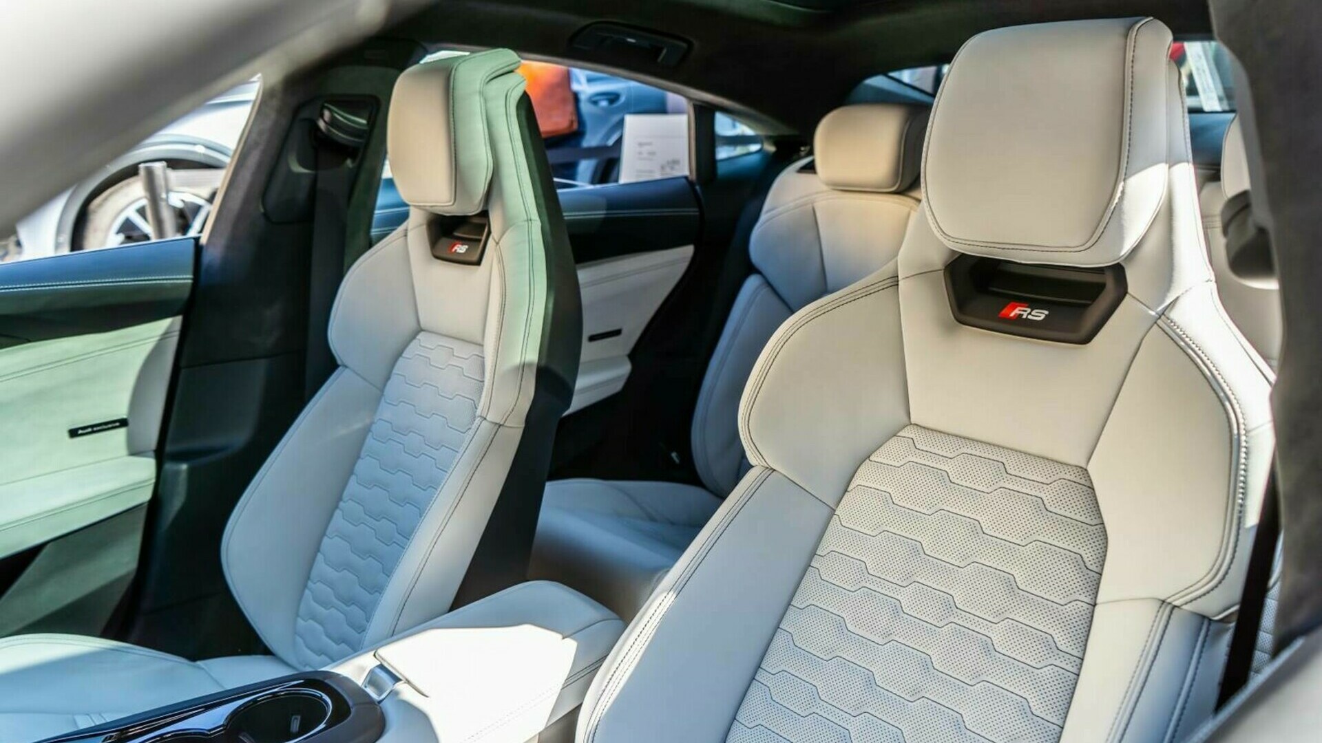 Audi e-tron GT ponazarja napredek na sodoben način. Izžareva športnost, kakovost in udobje hkrati. Opcijska športna sprednja sedeža plus z integriranima vzglavnikoma in podarjenimi stranicami zagotavljata dobro stransko oporo pri športni vožnji in vožnji skozi ovinke.