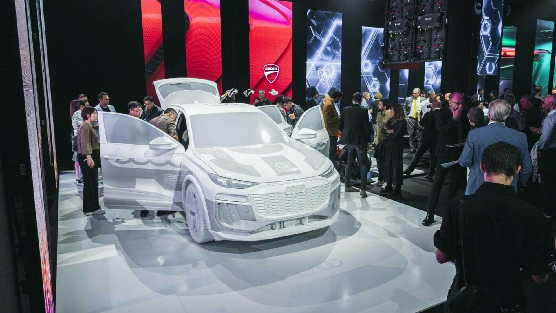V središču znamke Audi na IAA München Mobility 2023 je vsekakor revolucionarni povsem novi električni model imenovan Audi Q6 e-tron, vključno s popolnoma novim zaslonom in konceptom upravljanja. Glede na to, da je avtomobilski proizvajalec že nekaj mesecev prej razkril pogonski sklop in zunanjo obliko križanca, je njihov trenutni fokus pogled v notranjost, ki je obogatena s tehnološkimi inovacijami. Ima panoramski zaslon, ki ga sestavljata dva velika zaslona, temeljita pa na Android Automotive.