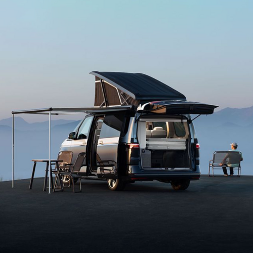 Prav zato so bili zložljiva stola in miza za kampiranje ter markiza vedno vgrajeni na desni strani vozila. Odslej pa je tako: znamka Volkswagen Gospodarska vozila s Californio CONCEPT z dodatnimi drsnimi vrati na voznikovi strani in – v stilu velike Grand Californie – bolj zadaj nameščenim kuhinjskim blokom tudi levo stran vozila odpira za kampiranje. California je tako kot avtodom še bistveno bolj vsestransko uporabna.