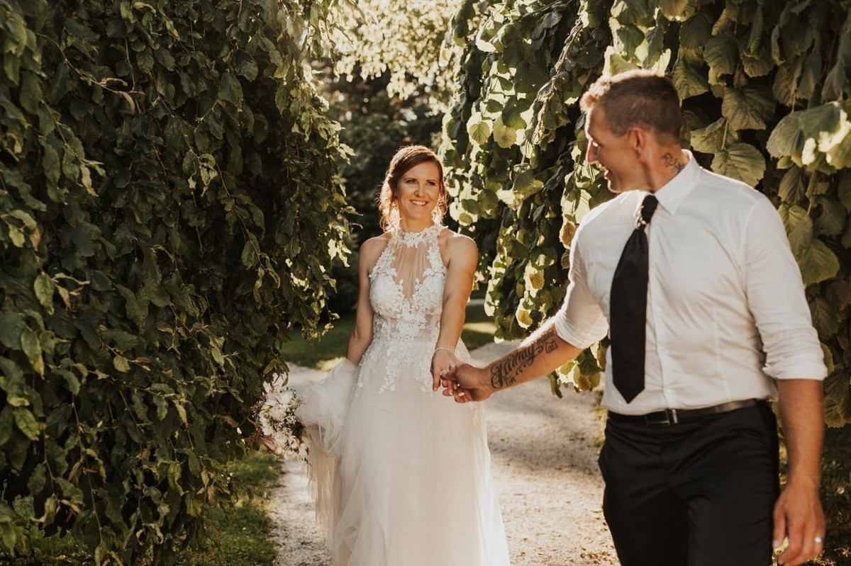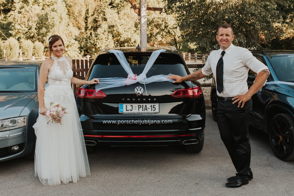 Nepozabni poročni dan se je začel na kar dveh lokacijah. Dogajanje pri ženinu se je začelo dopoldan - svatje so ženina takoj namučili na tradicionalem opravilu, ki se imenuje kar ‘šranga’. Z vsemi nalogami je opravil brez težav in se hitro odpravil po svojo nevesto. Pri premagovanju poti mu je pomagal novi Volkswagen Touareg. Sledila je civilna in cerkvena poroke, nato pa seveda odličen žur do jutranjih ur! Celoten dan je potekal odlično, najbolj pomembno pa je, da so na poroki uživali tako mladoporočenca kot tudi svatje!