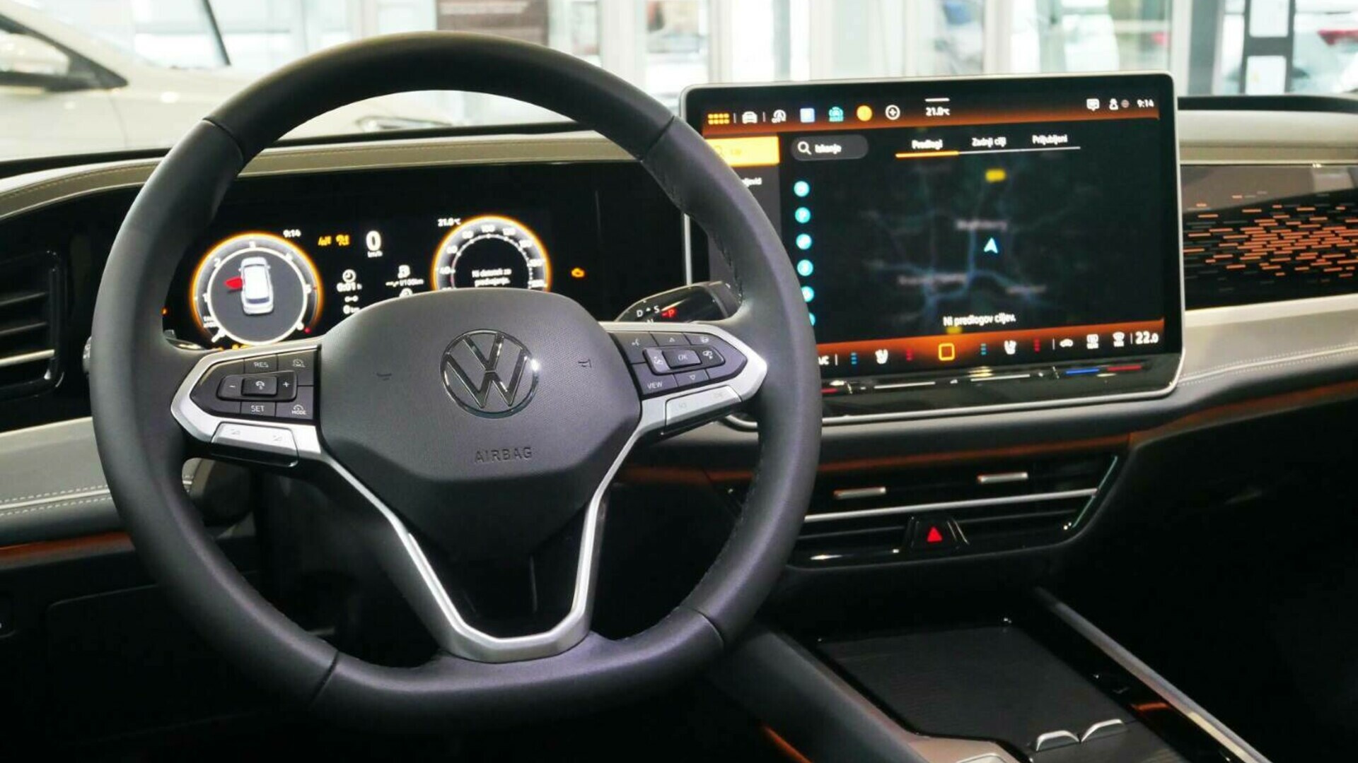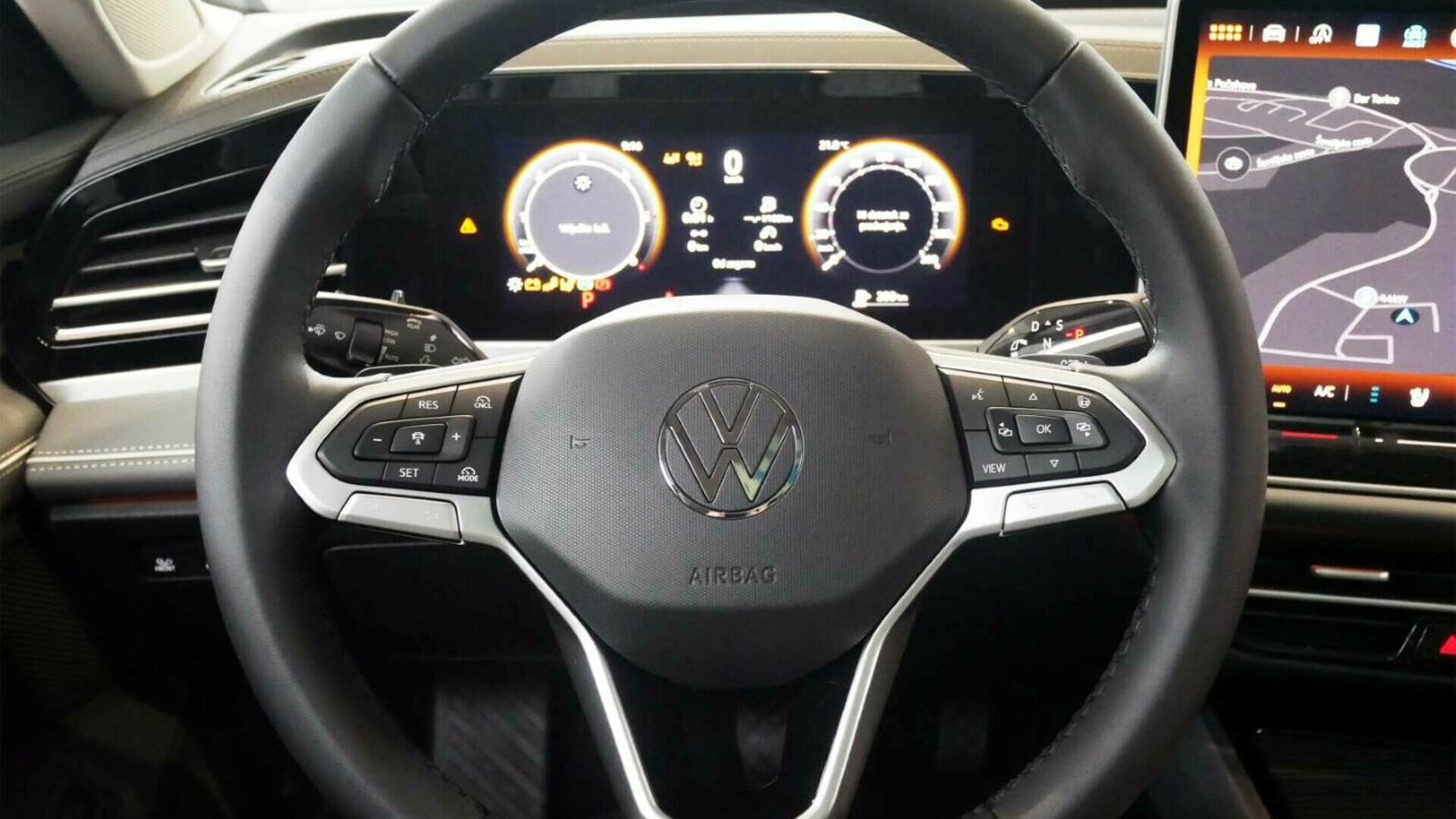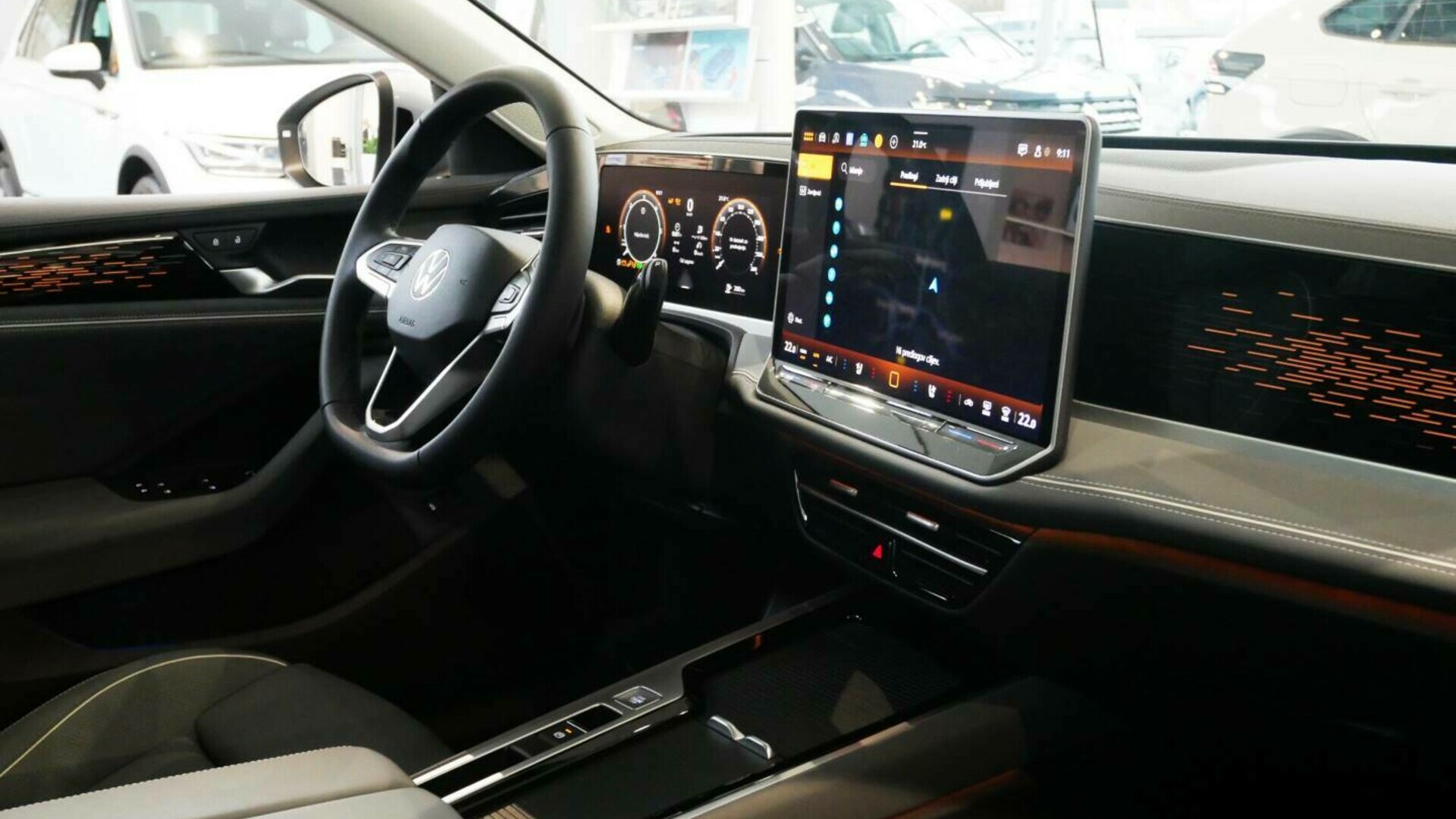 Nova zaslonska kulisa. Volkswagen je povsem na novo zasnoval visokokakovostno notranjost. Izstopa velika, jasno strukturirana zaslonska površina – elegantna, funkcionalna in napredna. Tehnično osnovo predstavlja vmesnik MIB4: najnovejša generacija modularne infotainment platforme omogoča intuitivno upravljanje, ki je bilo dosledno zasnovano tako, da izpolnjuje želje Volkswagnovih voznikov in voznic.