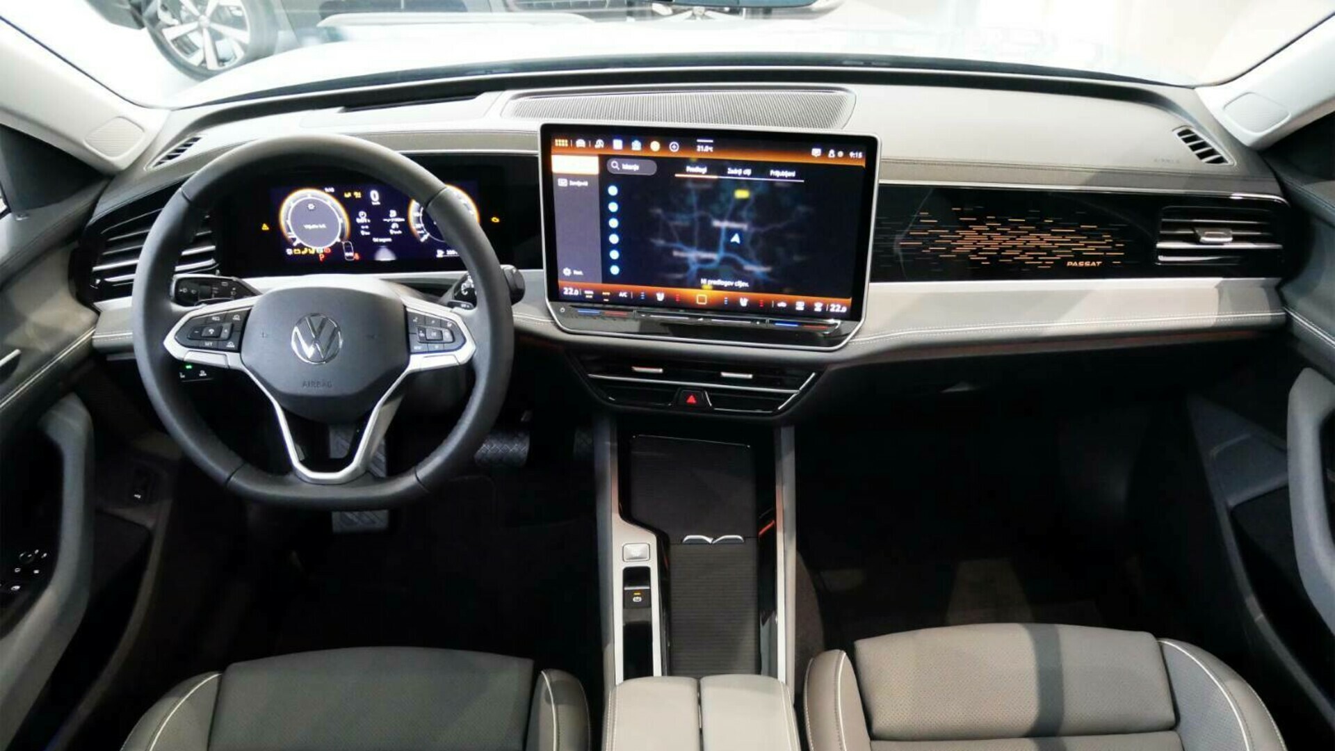 Nova notranjost Passata Varianta združuje visokokakovostne materiale, združuje oba zaslona na krovu, in sicer infotainment sistem z 12,9-palčnim zaslonom, ki se lahko po želji razširi na 15 palcev. Zaslon je nagnjen proti vozniku in ima preprosto upravljanje ter možnost glasovnega upravljanja IDA.