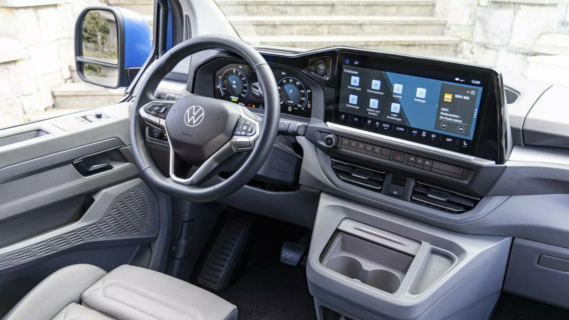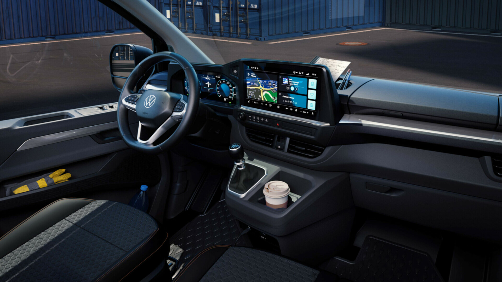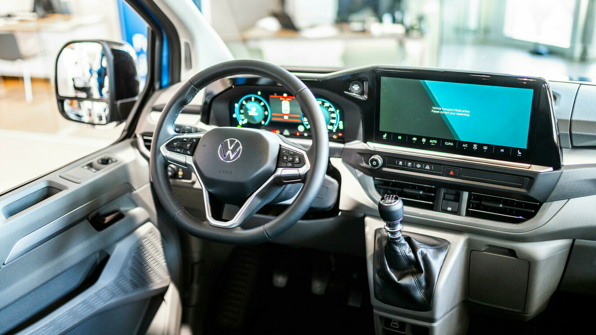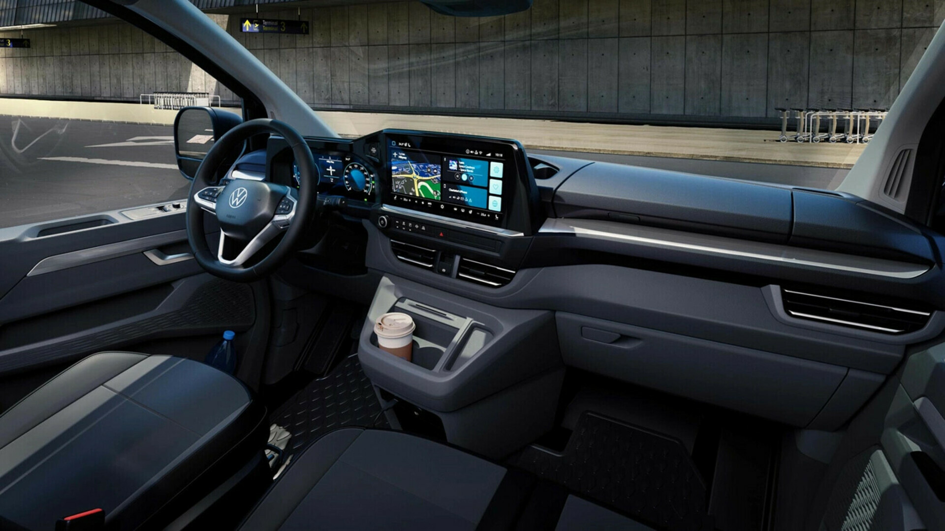 Ergonomsko delovno mesto z najsodobnejšo tehnologijo: Volkswagen Gospodarska vozila na novi zasnovi armaturne plošče modelov Transporter in Caravelle povezuje digitalni svet zaslonov in upravljalnih elementov ter robustne klasične tipke, tako da je za profesionalce uporaba obeh vozil v vsaki situaciji enostavna in varna. To vključuje tudi integracijo različnih USB-priključkov in 12-voltnih vtičnic ter – opcijsko – ene oz. do treh (pri priključnohibridnih in električnih modelih) 230-voltnih vtičnic.